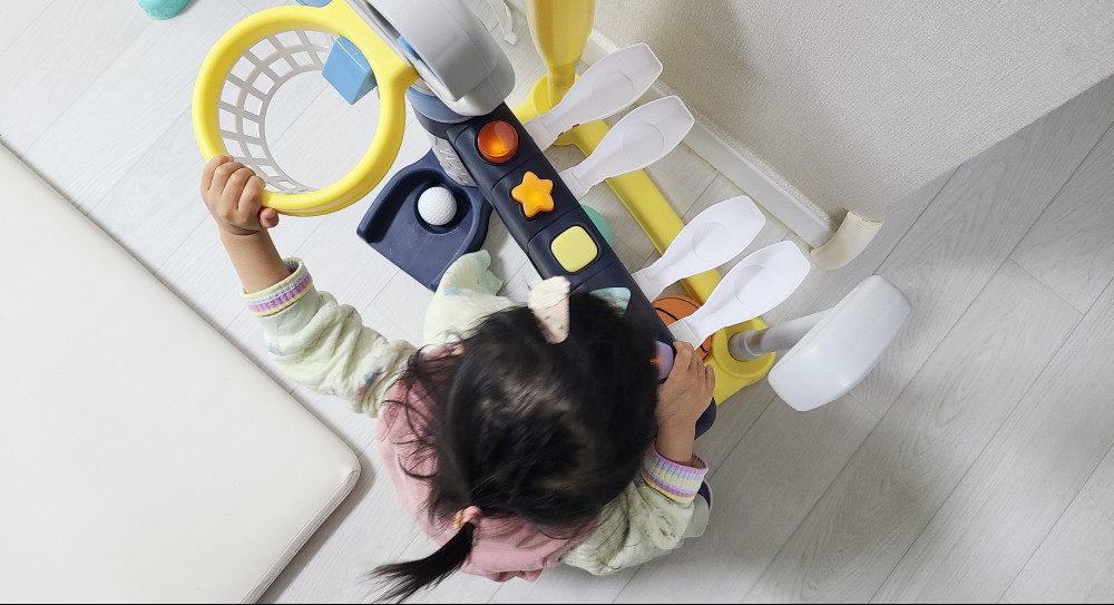 KC 인증을 받은 안전한 ABS 플라스틱 재질로 만들어졌고, 크기는 약 90×70×32cm, 무게는 3.5kg 정도예요. 가격대는 7만 원대이며, 돌 이후부터 2세~5세까지 사용할 수 있도록 권장되어 있습니다. 직접 사용해 본 경험으로는, 아이가 공을 던지고 넣는 동작을 반복하면서 대근육과 소근육 발달에 큰 도움이 되었어요. 또 “잘했어!”, “한 번 더!” 같은 격려 멘트가 아이 정서 발달에도 긍정적 영향을 주었고, 놀이 후에는 에너지를 많이 소모해 숙면에도 효과적이었습니다.