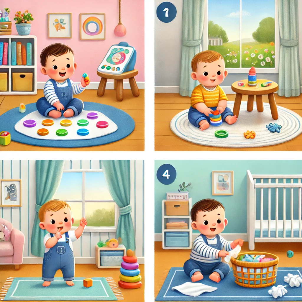 작은 탁자, 장난감, 의자 다리 등 청소할 곳은 정말 많죠? “누구 누가가 청소 도와줄래?”라고 하면 금세 물티슈 들고 뛰어와요! 모방놀이 및 자율성, 역할 놀이 발달 💡 부모 꿀팁: ‘아기 전용 청소 도구’를 따로 정해두면 놀이 몰입도가 높아져요! 감각을 자극하는 놀이도 좋아요!