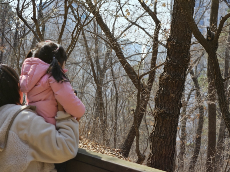 너무나 좋았던 부분이 아이가 놀이터를 활용해서 노는 것도 좋았지만 이날 우연히 청설모를 보았는데 평소에 동물원에서 볼법한 동물을 공원에서 마주치니 아이와 계속 뚫어지게 보았는데 아이가 이 장면이 기억에 남는지 청설모, 청설모를 외치더라고요.