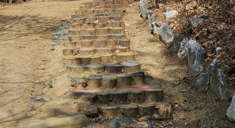 중간중간 위 사진처럼 자갈길이라던지 통나무 계단들이 있어 아이와 걸을 때 재미를 더하면서 걸을 수 있어서 좋았습니다. 특히나 아이들은 계단을 좋아하죠? 통나무계단을 여러 번 오르락내리락하면 대근육 발달에도 좋고 아이가 웃음꽃을 띄니 광교호수공원 오기를 잘했다는 생각이 들더라고요.