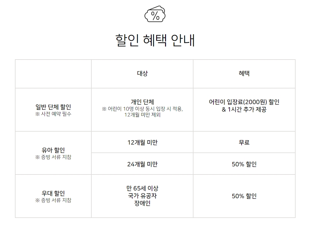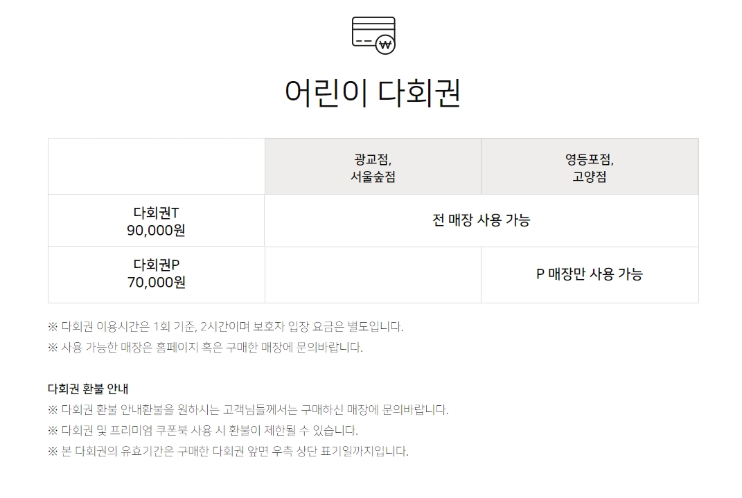 어린이 다회권도 있으며 할인혜택도 있으니 참고해 주시면 좋을 것 같아요.