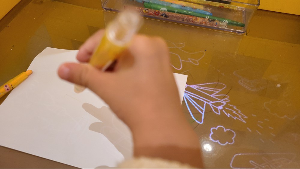 미디어와 상호작용하는 놀이가 굉장히 놀라웠는데 그중 너무나 신기했던 놀이는 바로 도안에 색칠놀이하고 난 뒤, 색칠한