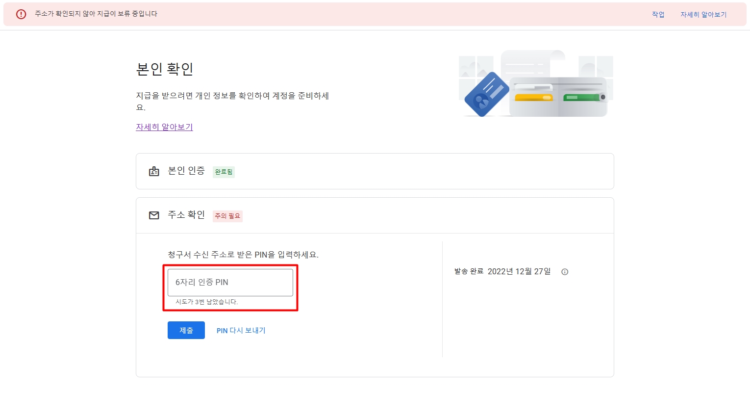 구글 애드센스 핀번호 입력하기 주소가 확인되지 않아 지급이 보류 중입니다 본문