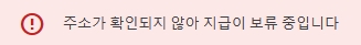 주소가 확인되지 않아 지급이 보류 중입니다