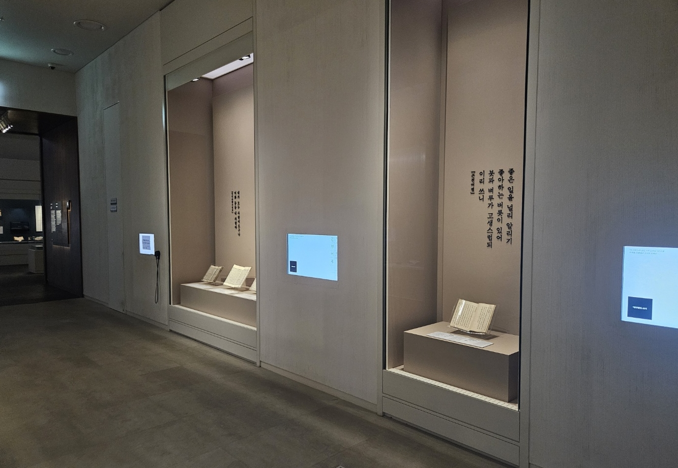 1450년에 세종대왕의 업적을 기리기 위해 제작된 '세종어보'도 볼 수 있었는데, 사라진 글자들에 대한 이야기와 지금 우리가 쓰기까지 글자가 변경되는 배경을 알 수 있어 흥미로웠습니다. 또 임금들이 직접 한글로 작성한 책들과 일상에서 활용된 자료들도 전시되어 있었고 그 내용들을 둘러보는 내내 흥미로웠어요!