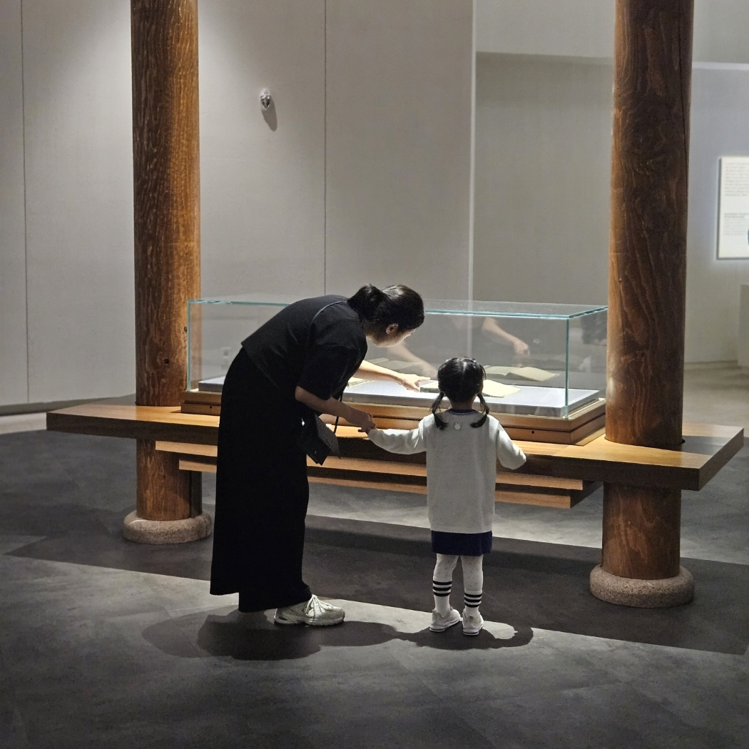 국립한글박물관 내에 상설전시관은 꼭 구경하세요! ‘훈민정음, 천년의 문자 계획’이라는 전시를 어린 시절 방문했을 때는 단순히 재미로만 보았는데, 아이와 같이 보면서 이제는 전시의 깊이를 느낄 수 있게 되더라고요. 미디어 아트 전시로 구성되어 있어 시각적으로도 흥미롭고, 한글이 만들어지는 과정과 체험 프로그램까지 있어 생각보다 재미있었어요!