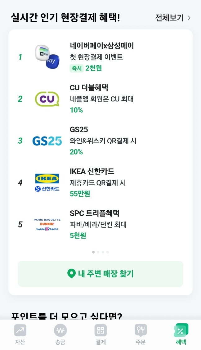 (예를 들어 네이버페이 오프라인 결제 시 할인은 삼성페이로 적용되는지 네이버페이로 적용되는지에 따라 할인이나 적립 차이가 존재한다 할 수 있습니다)