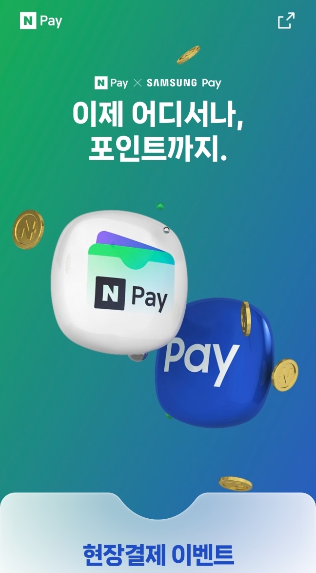 현재 현장결제 이벤트를 진행하는 거 알고 계신가요? 네이버페이 삼성페이 현장결제 이벤트 3/29(수) ~ 4/30(일)