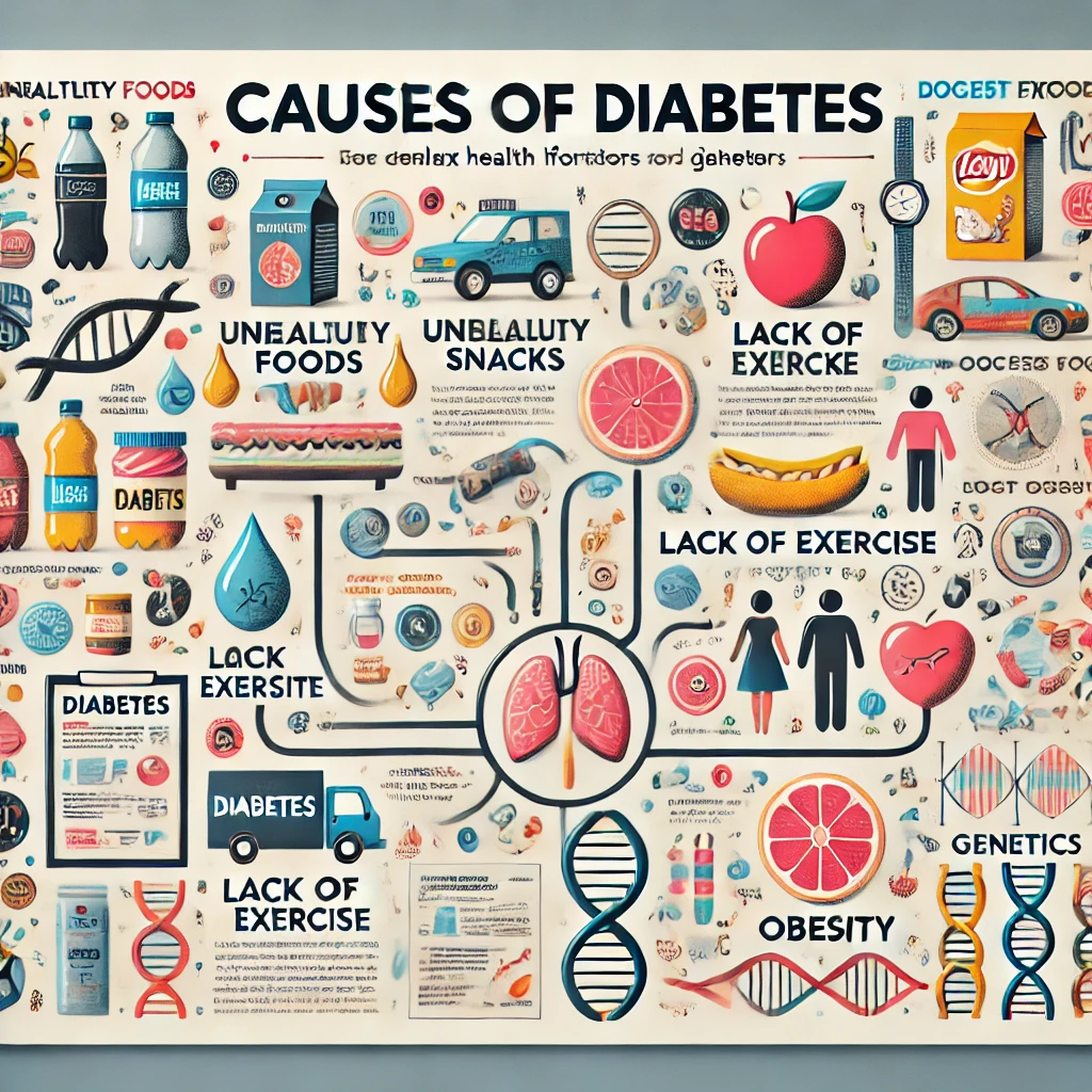 당뇨병의 정확한 발병 원인은 아직 밝혀지지 않았지만, 유전적 요인과 환경적 요인이 복합적으로 작용한다고 알려져 있습니다. 유전적으로 당뇨병 가족력이 있으면 발병 위험이 높아지며, 특히 부모가 당뇨병인 경우 자녀의 발병 확률이 높습니다. 환경적 요인으로는 비만, 고령, 운동 부족, 스트레스, 임신 등이 있으며, 특히 비만은 인슐린 저항성을 높여 혈당 조절을 어렵게 하여 중요한 원인으로 꼽힙니다. 또한 고칼로리, 고지방 식단의 증가로 인해 비만율과 함께 당뇨병 발생도 늘어나고 있습니다.