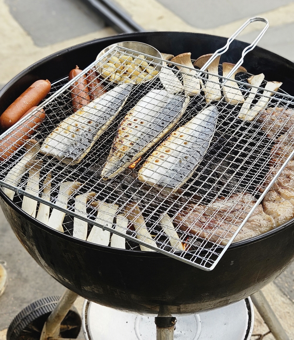 카라반1호 앞에는 개인 바베큐 공간이 마련되어 있어서 저녁에는 준비해 간 고기와 야채로 바베큐 타임을 가졌어요! 바베큐 그릴은 대여 가능하고 숯도 제공되니 따로 장비 걱정 없이 가볍게 준비만 해가면 돼요.