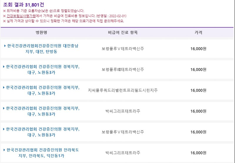 위 링크로 들어가서 주소지를 입력하면 독감 예방접종(주사, 백신) 가격정보 및 병원명을 확인하실 수 있습니다.