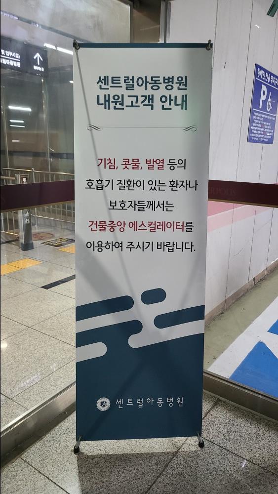 기침, 콧물, 발열 등 호흡기 증상이 있는 보호자나 환자는 엘리베이터가 아닌 에스컬레이터 이용을 권장하고 있었습니다.