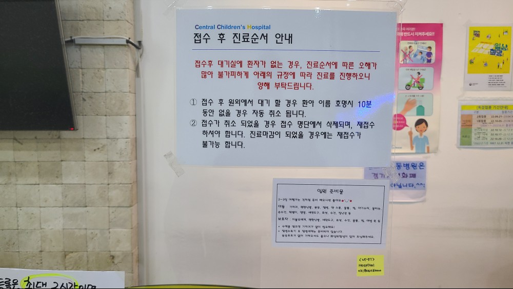 저의 경우를 말씀드리자면 오전 8시 30분쯤 미리 가서 대기표를 뽑은 후 다시 집에 갔다가 아이와 함께 왔는데요. 어린아이 일 수록 아무래도 병원에서 대기하기도 힘들고 해서 많은 부모님들이 대기표를 먼저 뽑은 후에 진료 시간에 맞춰 다시 오시더라고요. 참고로 저는 2번째로 진료 받아볼 수 있었습니다.