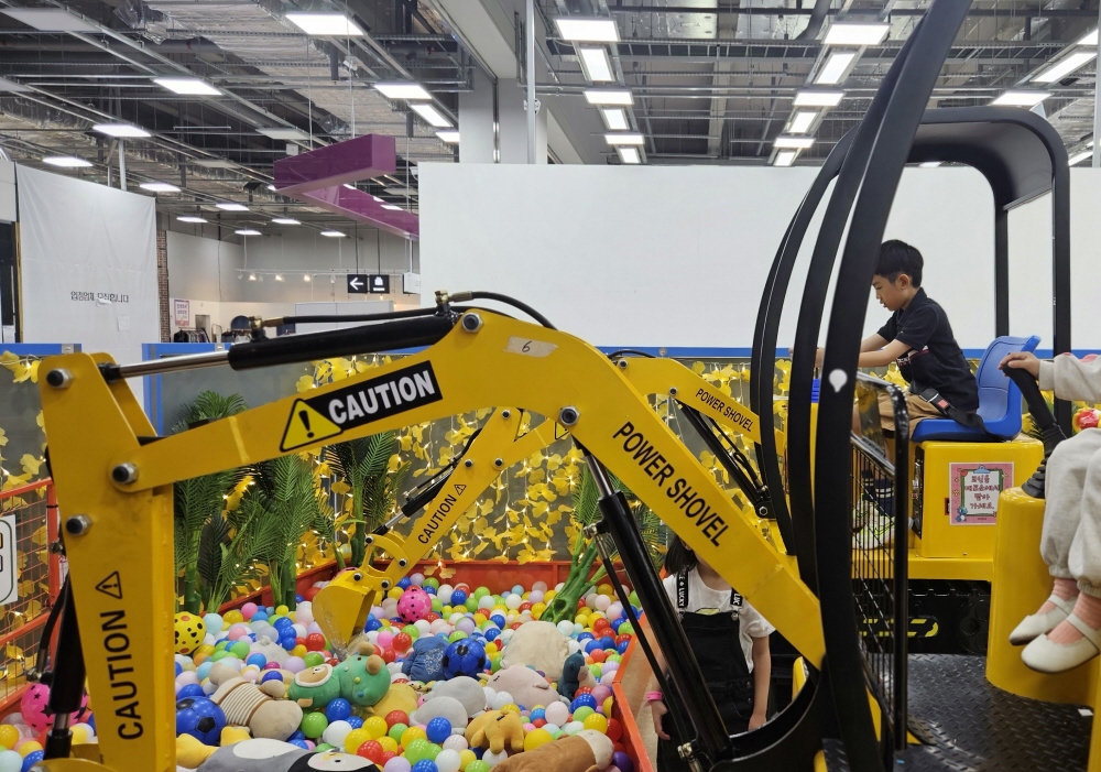 이건 진짜 몰랐는데 포크레인 탑승 놀이기구가 있어요~!!! 진짜 포크레인처럼 생긴 기구에 앉아서 직접 조종하면서 볼풀 안에 있는 인형들을 퍼 올리는 체험이에요. 8세, 10세 조카들이 여기서 엄청 신나했어요~!!! 아이들은 물론 사실 어른도 해보고 싶었던 거 비밀 ㅎㅎ