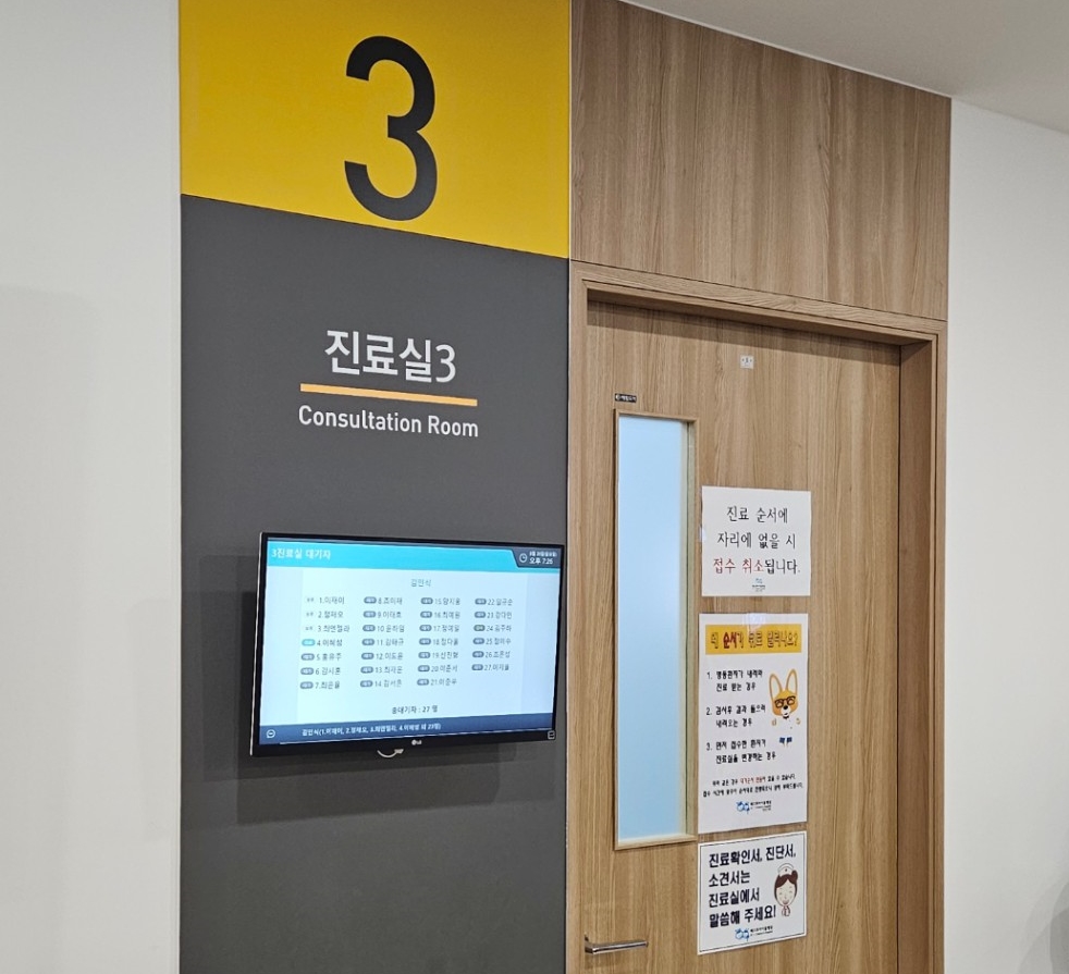 원무과를 통한 진료 접수 후 2층 코로나 검사를 진행 후에 다시 3층으로 올라와 진료실 앞에서 대기하시면 됩니다. 이후는 안내에 따라 진료받으시면 됩니다.