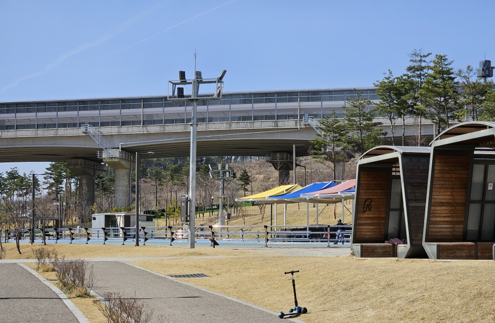 씽씽이놀이터를 가시다 보면 중간중간 쉴 수 있는 쉼터들이 있습니다. 가족단위로 사람들이 많이 와서 도시락도 드시고 있는 모습을 볼 수 있는데요. 킥보드뿐만 아니라 소풍을 가기에도 좋은 곳입니다. 근처에 참여형어린이놀이터와 신천리카페거리도 있어 볼 것을 할 것들도 많기 때문에 킥보드만 타기에 아쉬우시다면 돗자리를 꼭 가져가셔서 중간중간 마련되어 있는 쉼터에서 쉬면서 간식을 드시는 것도 추천드립니다.