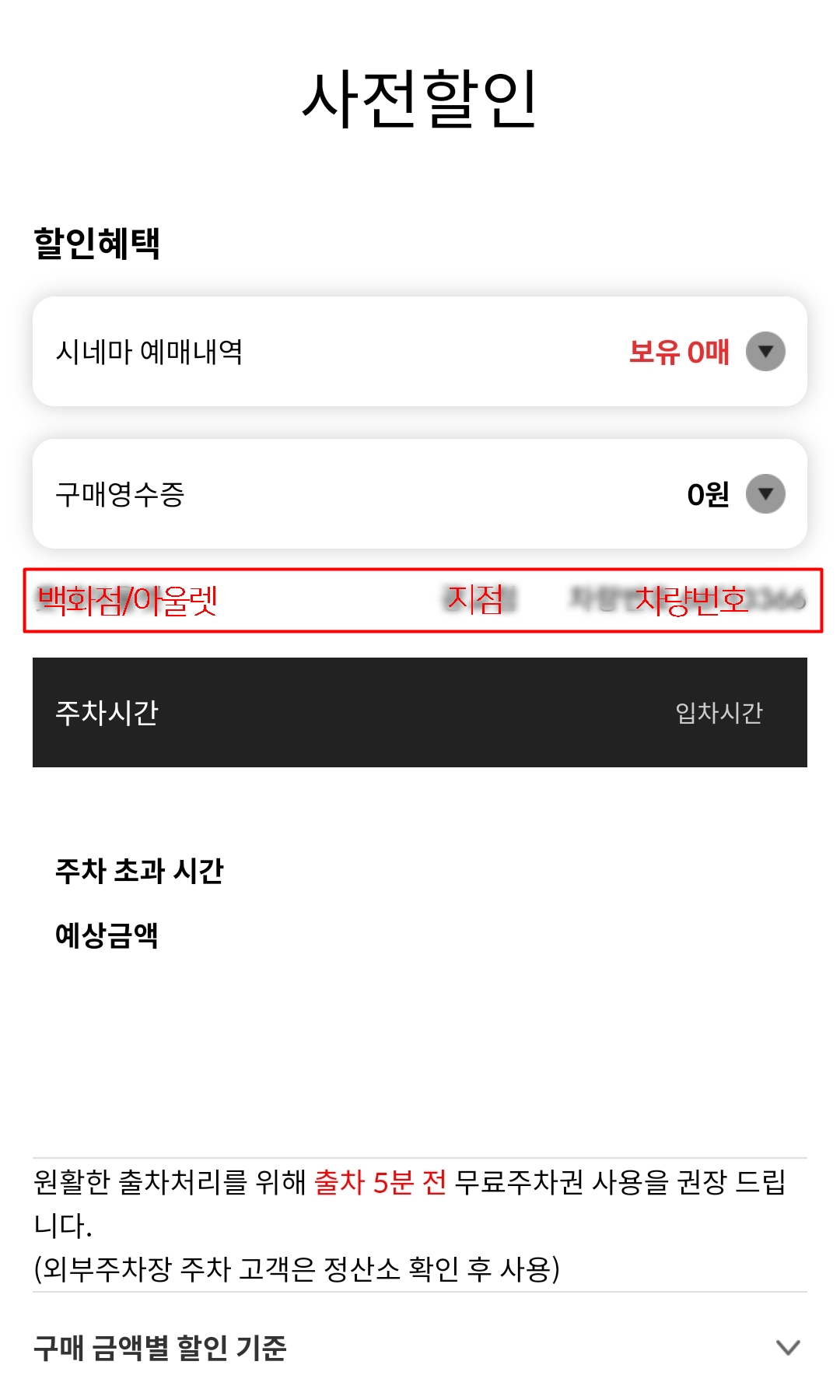 롯데백화점 또는 롯데아울렛에서 사용가능하며 차량을 출차하기 5분 전에 진행해주시면 됩니다 :)