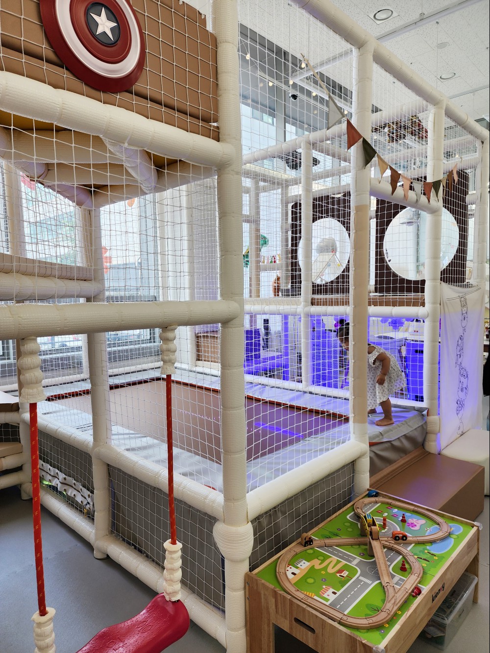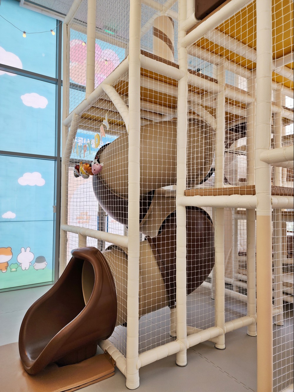 기구로는 트램폴린, 미끄럼틀 (미끄럼틀의 경우에는 총 3가지가 있었어요) 낚시놀이, 그네, 자동차놀이 등 굉장히 다양한 놀이기구들이 준비되어 있어요. 특히나 좋았던 부분은 기구들의 모든 부분이 안전하게 감싸져 있어서 아이들이 놀기에 매우 괜찮아 보였습니다.