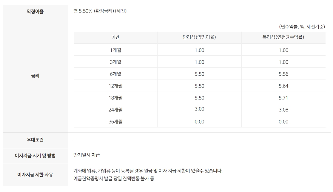 1) 약정이율 - 연 5.50% (확정금리)(세전)