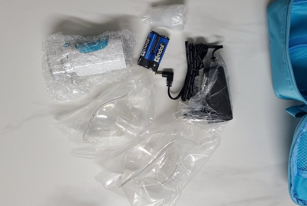 - 구성품: 본체, 챔버, 마스크(대·소), 마우스피스, 어댑터, 보관 가방