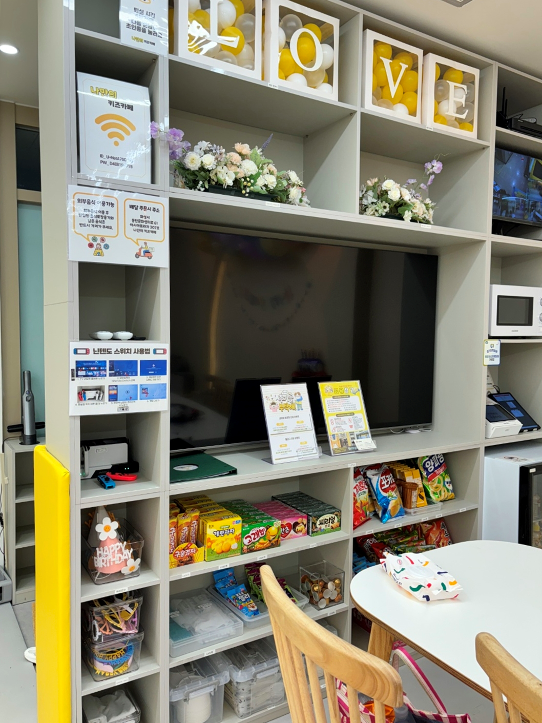 또한 테이블존에서 배달 및 포장 음식 취식이 가능하여서 음식을 따로 준비할 필요 없이 배달로 또는 주문 포장하여 키즈카페 내에서 섭취가 가능합니다.