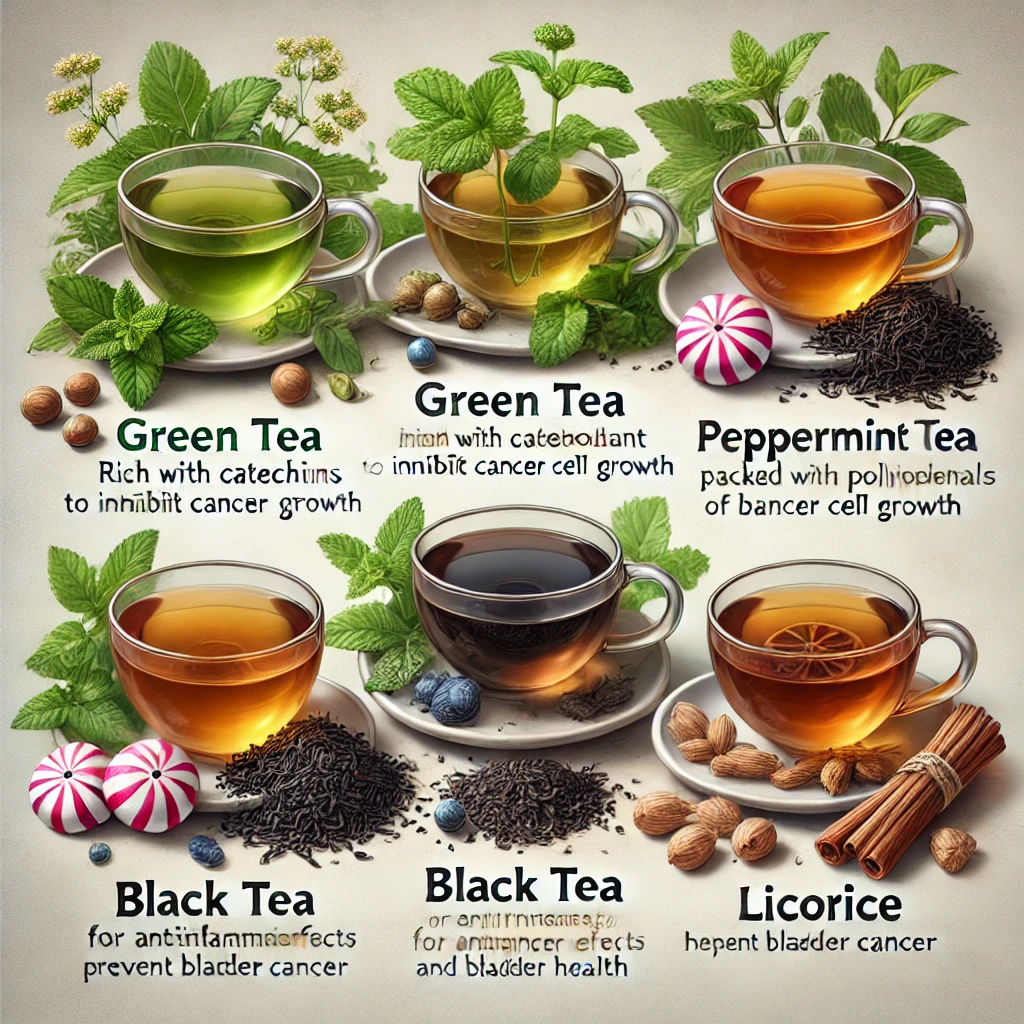 - 녹차: 카테킨이라는 강력한 항산화 물질이 들어 있어 암세포의 성장을 억제하고, 방광암 예방에 도움이 됩니다.