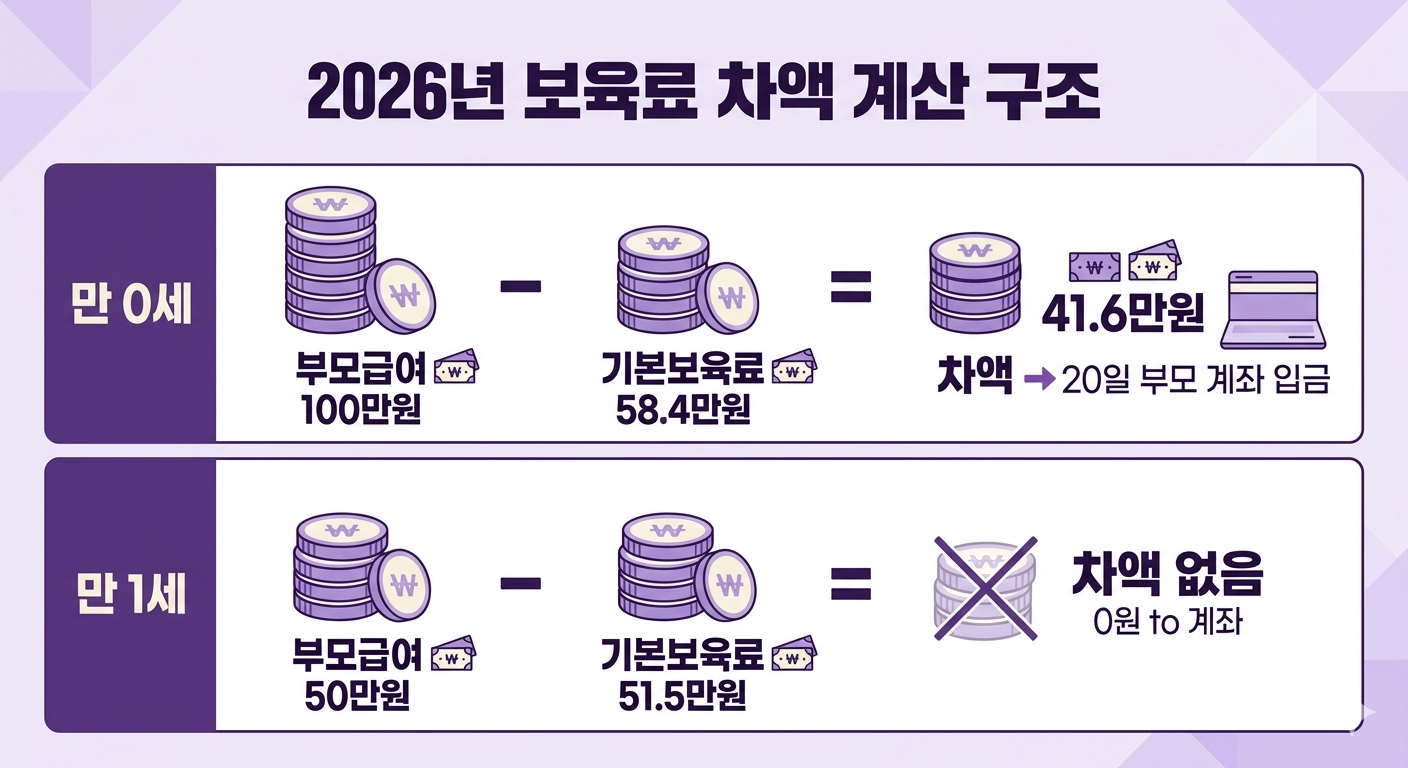 ① 차액 = 부모급여 − 기본보육료 (만 0세 41.6만원, 만 1세 0원)