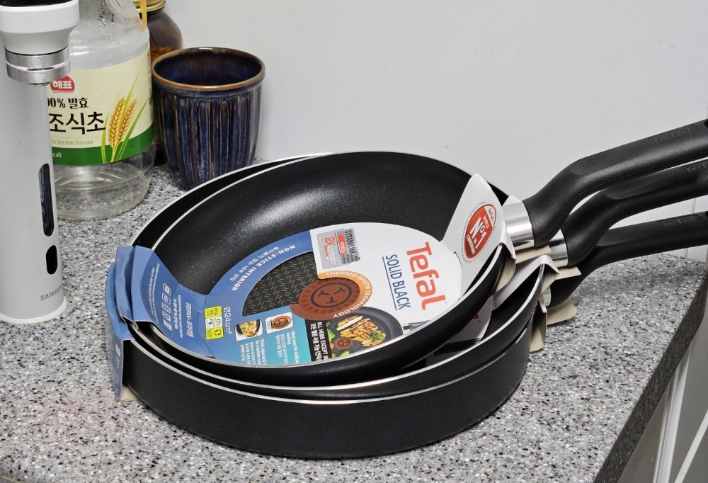 사진에는 테팔 프라이팬이지만 모든 프라이팬에 적용이 되는 부분입니다. 그러니 새 프라이팬 세척 시에 아래의 방법대로 진행하시면 됩니다. 지금부터 사진을 보시면서 천천히 글 읽어가면서 따라 하시면 됩니다.