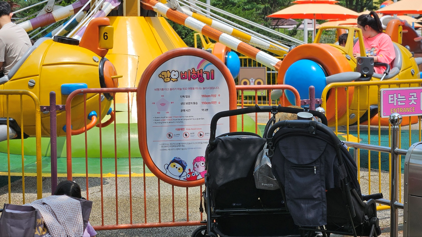 110cm 이상이 타는 놀이기구이지만 신장 110cm 미만의 어린이는 보호자 동반하에 탈 수 있습니다. 깜부비행기는 회전하면서 상승과 하강을 반복해 마치 전말 비행기를 타는 것처럼 아이들이 느낄 수 있습니다. 그래서 아이들에게 굉장히 인기 있는 서울랜드 놀이기구 중 하나고요.