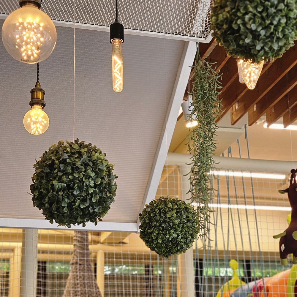 놀이존 구성도 인상적이었어요. 일반 키즈카페에서 흔히 볼 수 있는 볼풀이나 모래놀이는 없었고, 대신 큰 공놀이와 등반 놀이 같은 활동적인 놀이들이 주를 이뤘어요! 특히 기억에 남는 건 바닥이 튼튼한 그물망처럼 되어 있어서 아이가 마음껏 뛰어다닐 수 있었다는 점이에요. 위험해 보이지 않게 잘 설계되어 있었고, 실제로 아이들이 넘어지거나 다칠 걱정 없이 정말 신나게 놀았어요. 아이들은 체력을 쓰면서 에너지를 발산하고, 엄마 아빠는 멀찍이 앉아 있으면서도 안심할 수 있는 환경이라서 이런 구성이 참 좋다고 느꼈어요.