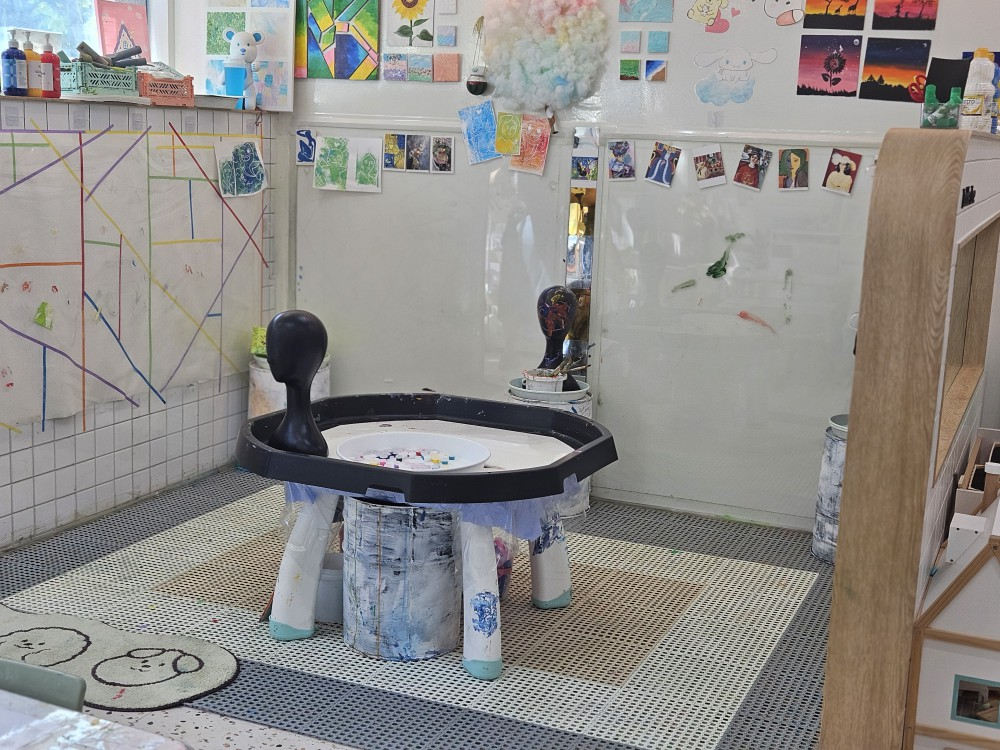 슬라임체험을 진행하고 선생님께서 액자를 만들어주시는 동안 놀이방에서 재미있게 놀았어요. 별숲그리다는 미술 체험 외에도 이렇게 원목 장난감과 주방놀이 등 다양한 놀이공간이 마련되어 있어 좋더라고요. 곳곳에 포토존도 마련되어 있어서 이쁜 사진도 찍을 수 있었습니다.
