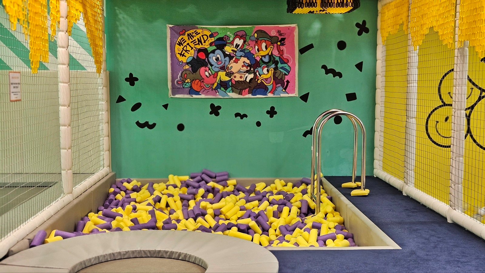 트램펄린, 야광동굴, 컬러자갈, 인피니티 볼풀 등 여러 가지 콘셉트의 다양한 아트존이 있는 앨리웨이 키즈카페 입니다.