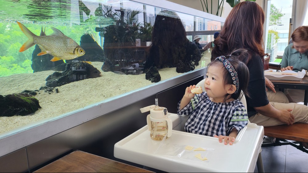 아기랑도 가기 좋으면서 카페 내부에 작은 수족관도 있어서 더더욱 만족
