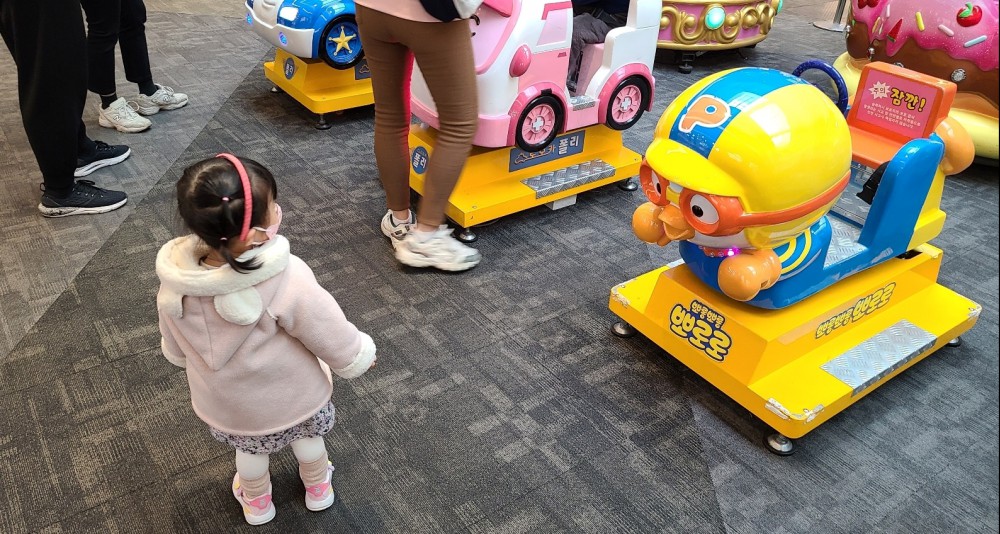 저희 딸내미는 18개월 때 방문했는데 타요를 슬슬 보여주는 차여서 타요에 타고 싶다고 하더라고요. 핑크퐁이나 아기상어를 더 즐겨보는 아이기때문에 핑크퐁이나 아기상어가 있었으면 더 좋았을텐데 없어서 이 부분은 아쉽지만