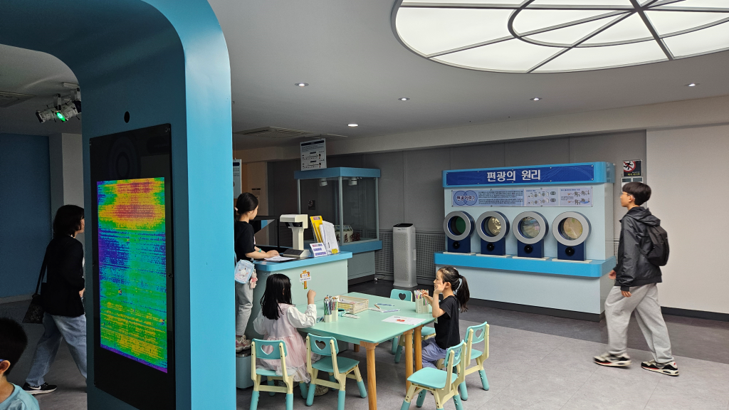 입장하자마자 눈에 띄는 건 유아전시실이에요! 7세 이하 아이들을 위한 공간이라 저희 5살 딸아이가 너무 좋아했는데요. 표정 만들기, 모레를 이용한 놀이, 소리로 움직이는 퍼즐, 진단, 바람을 이용한 농구 게임 등 오감이 자극되는 활동이 많았어요! 화면을 보며 모션을 따라 하는 체험도 있었는데, 아이가 몸을 움직이며 신나게 놀 수 있어서 좋더라고요. 조금 더 큰 아이들을 위한 전시실은 한 층 위에 있는데, 여기서는 과학의 원리를 직접 체험할 수 있는 공간들이 가득했어요. 플라즈마 공, 자석 체험, 음향을 이용한 실험 도구 등 손으로 직접 조작하면서 배울 수 있어 과학에 대한 호기심을 자극하기에 딱 좋았답니다.