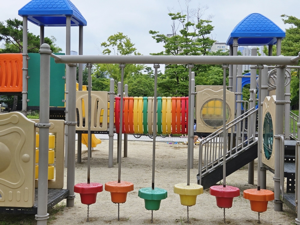 어린이교통공원에는 놀이터가 있는데 이 놀이터의 바닥이 모래로 이루어져 있습니다. 요즘 대부분의 놀이터가 바닥이 모래로 안 이루어져 있어서 아이들이 모래놀이를 할 때도 조건에 부합하는 곳을 찾아다녀야 되는데 이곳에서 모래놀이가 됩니다. 모래놀이뿐만 아니라 분수도 나오는 걸 알고 계신가요? 분수도 나오기 때문에 특히나 여름에 많은 아이들이 즐긴다고 하더라고요.
