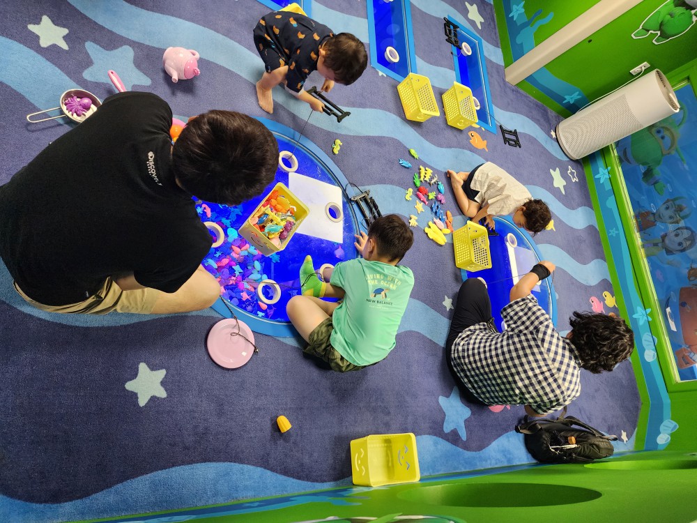 요리놀이 그리고 낚시놀이를 할 수 있는 곳인데 아이가 낚시놀이에 굉장히 관심 있어하더라고요. 생각보다 고기 잡기가 어려워진 않아 좋았습니다. 다른 곳들을 가면 낚시가 유난히 안 되는 곳들이 있는데 낚시추의 자성이라던지 잡고 올라오는 거라던지 전체적으로 아이가 흥미를 가질 수 있도록 만든 것 같아요.