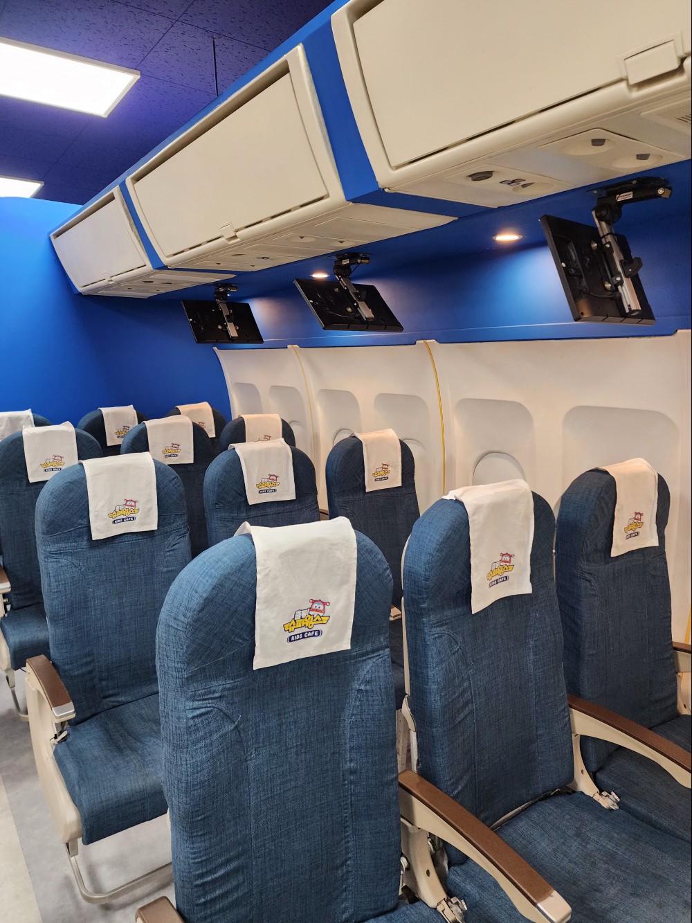 기내식을 체험할 수 있도록 설계된 곳인데 아이를 앉혀놓으면 마치 진짜 비행기 같은 착각이 들 정도로 흡사하게 만들었어요. 아직 비행기를 안 타본 딸내미를 자리에 앉히며 여러 번 설명해 준 기억이 나네요.