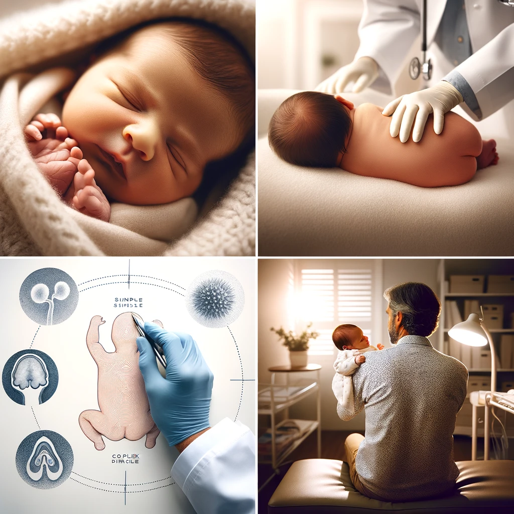 - 복합 딤플: 복합 딤플은 딤플이 깊거나, 주변 피부에 이상이 있는 경우를 말합니다. 예를 들어, 딤플 주변에 털이 많이 자라거나, 피부가 색소침착을 보이거나, 딤플이 깊게 패인 경우가 해당됩니다. 이러한 경우는 신경관 결손의 가능성이 있기 때문에, 초음파나 MRI 등 추가적인 검사가 필요할 수 있습니다.