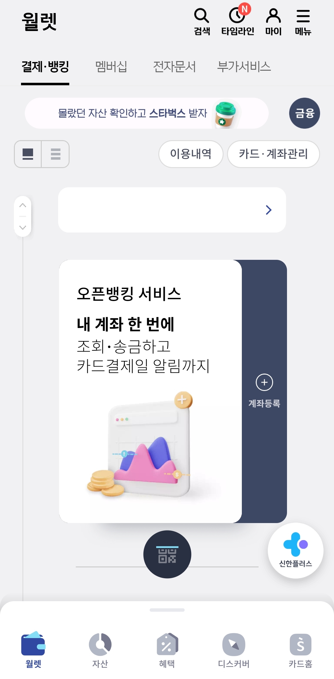 1) 신한플레이 어플을 실행 후 상단에 돋보기모양 버튼을 클릭하여 검색창을 활성화해 줍니다.