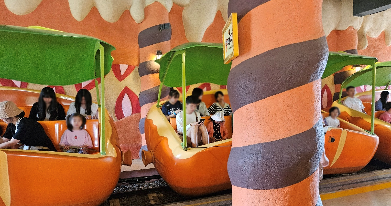 신화테마파크에 가시면 월드익스프레스도 꼭 타보시길 권해드립니다. 먼저 무섭지 않아요. 아이와 기차여행을 떠날 수 있는 신화월드 테마파크 놀이기구입니다. 천천히 라바랜드를 구경하는 열차로 열차에 앉아서 구역별로 돌아가면서 설명과 함께 라바들이 반겨주니 아이들이 안 좋아할 수가 없습니다. 특히 열차를 옆으로 앉아 마자 관람하는 것처럼 좌측으로 앉아가니깐 더욱 구경할 요소들이 많아 아이가 좋아했어요.