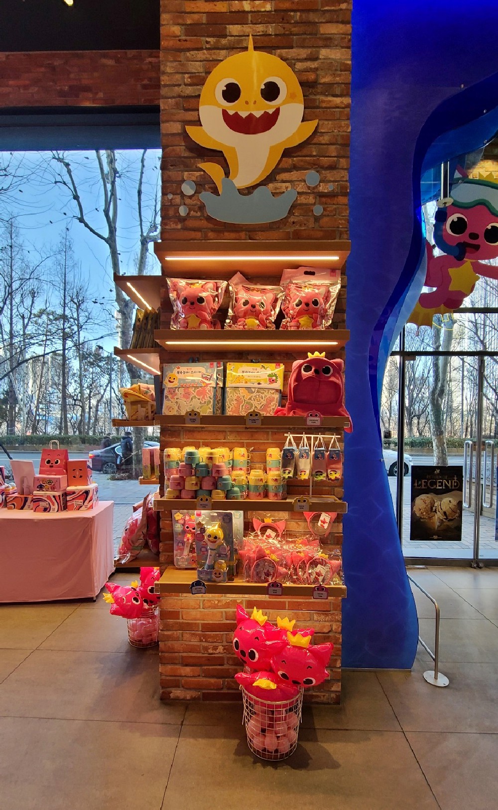 부모님들은 아시겠지만 뽀로로 키즈카페 , 뽀로로파크는 많아도 핑크퐁 키즈카페는 없는데 이곳 배스킨라빈스 석촌호수점 내부에는 샵인샵 개념으로 아기상어 키즈카페 존이 있습니다.