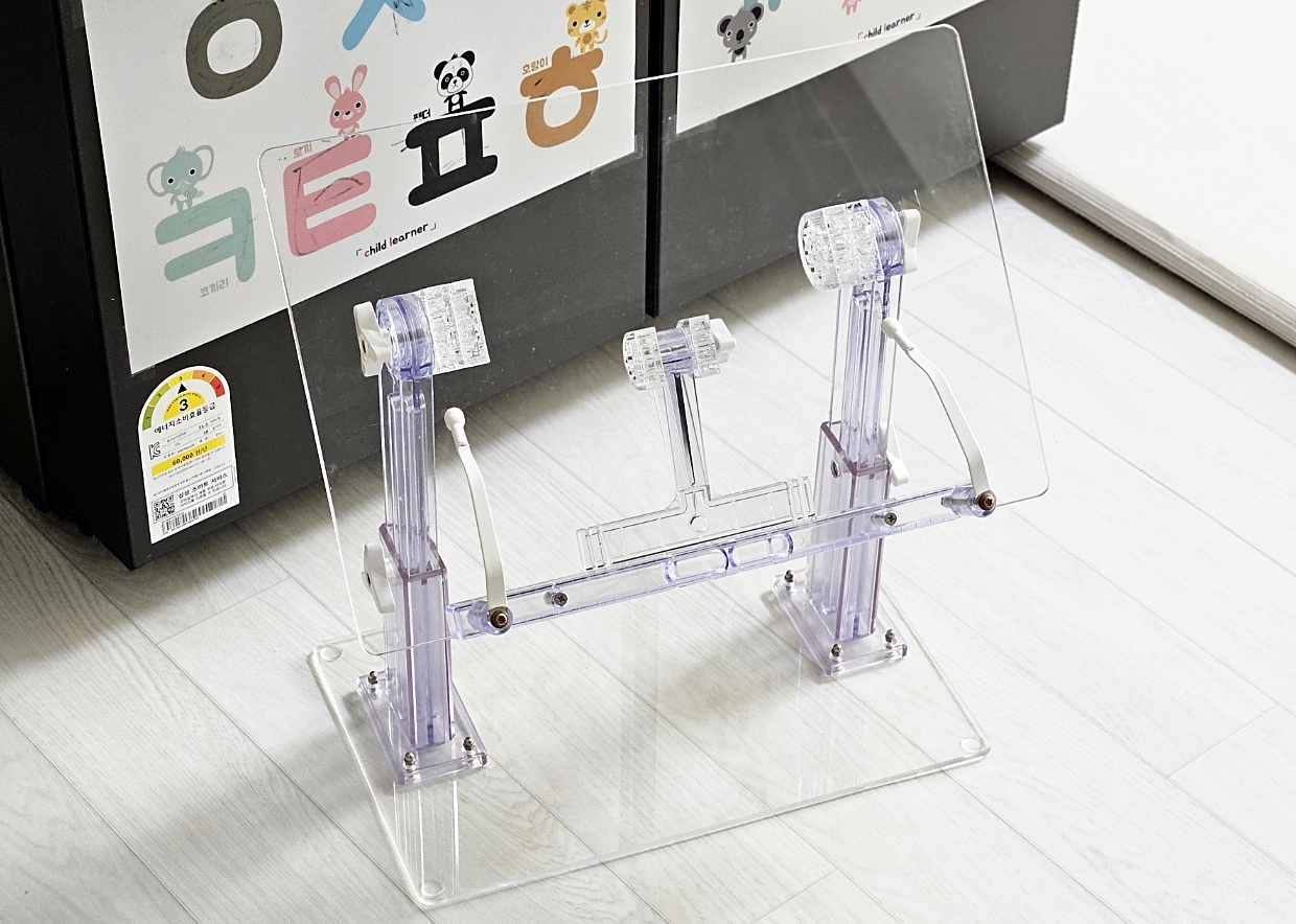 나소독서대는 투명아크릴로 되어있어서 집중력에 방해되는 요소가 없습니다. 보통 우드라던지 캐릭터의 독서대도 많이 보이지만 우리 아이가 나소독서대를 선택한 이유 중 또 하나의 이유를 뽑자면 깔끔한 디자인이었어요.