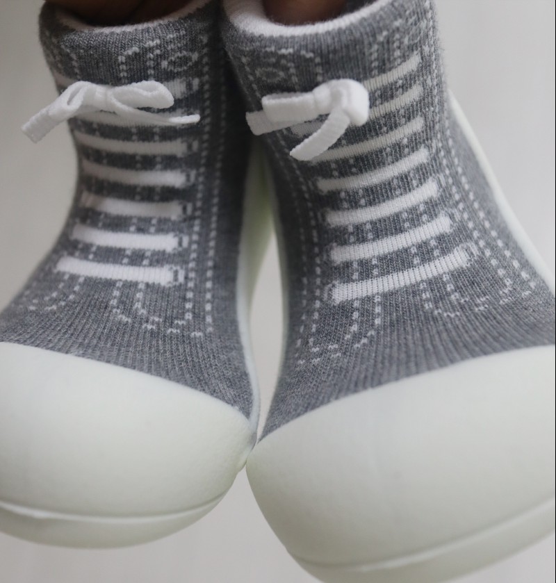 - 초경량 & 유연성 - 양말처럼 신고 벗기가 편리하고 초경량 소재로 가벼움. 소프트솔 구조와 경량화로 양말신발 형태를 강조해 초기 보행에 도움을 줌.