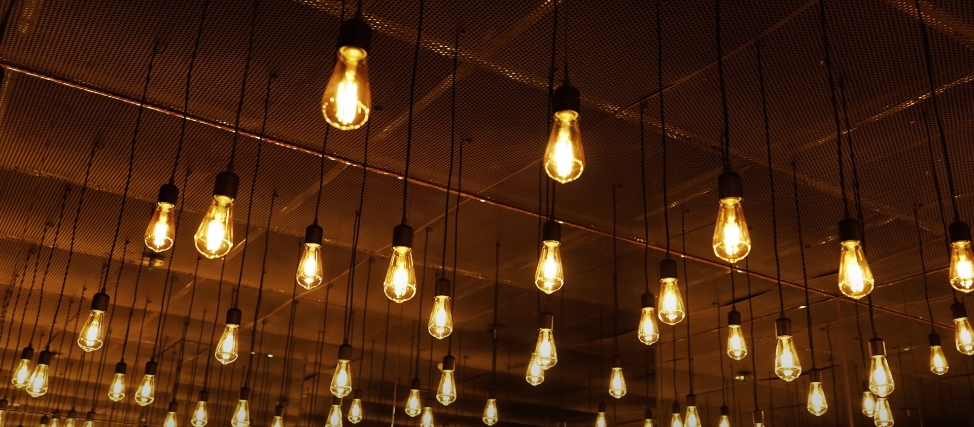- 천장에 달린 수많은 전구들로부터 빛나는 공간 ' 웰컴라이트'