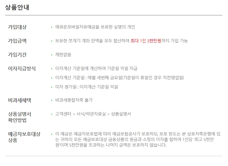 실명의 개인으로 애큐온모바일자유예금을 보유하고 있어야만 가입이 가능하며 해당 상품 가입이 선행되어야 합니다.