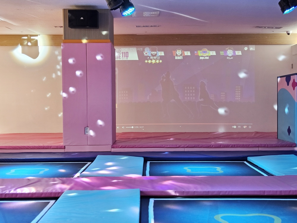 직원분께서 DJ를 봐주시면서 아이들과 함께 신나게 놀아주시는데 마치 흡사 점핑 운동을 재미있게 하는 우리 아이들의 모습을 보실 수 있습니다. 사진만 봐도 아이들의 신남이 느껴지죠? 이 공간은 정말 너무 잘 만들어진 것 같아요.