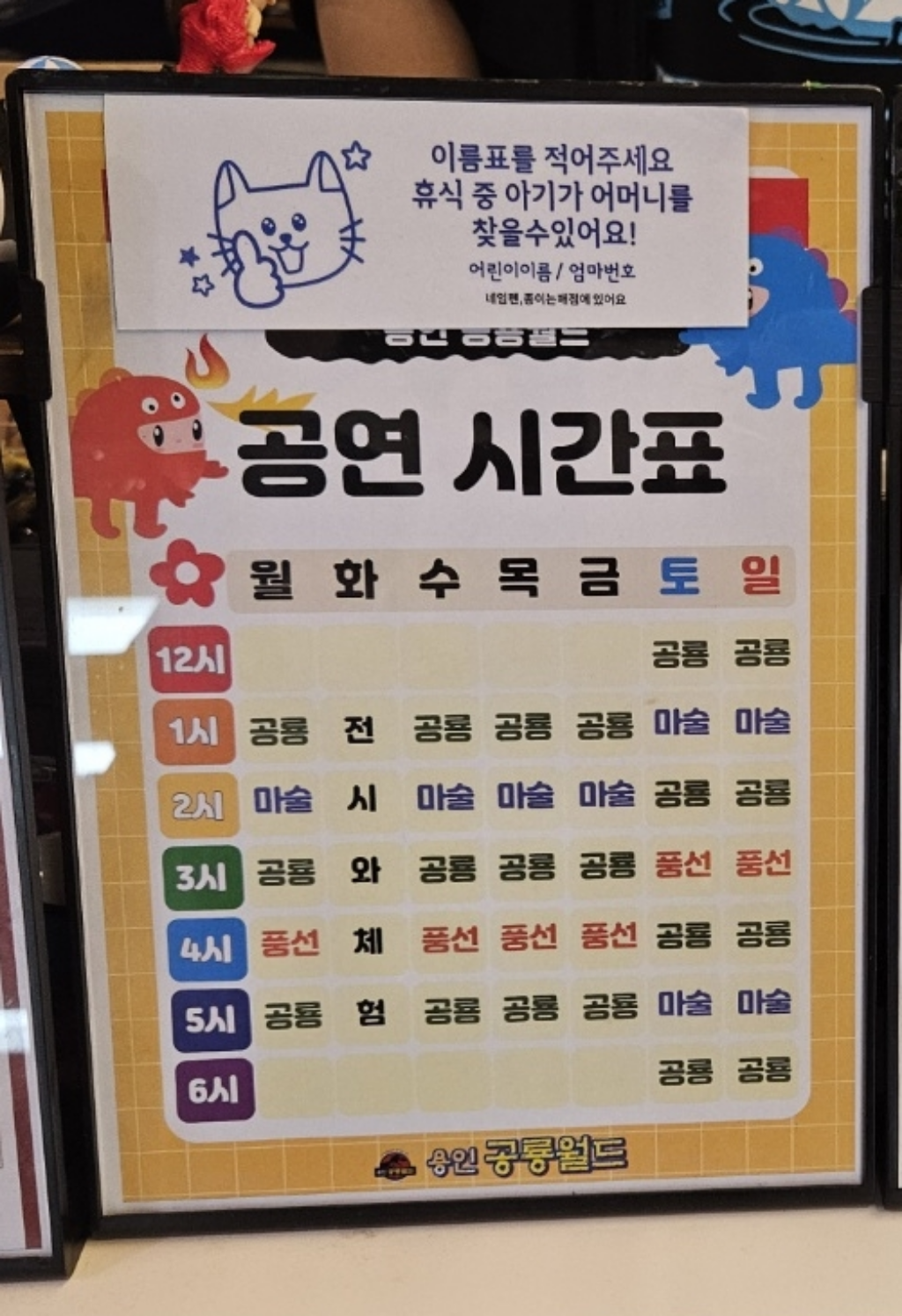- 공연! 1시간마다 진행되는 공연은 생각보다 한번 진행할 때마다 약 30분가량은 진행되기 때문에 공연 그다음 30분 놀이 그다음 공연 이런 식의 패턴으로 아마 노실 수 있어요. 생각보다 공연에서 아이들이 집중력이 좋고 부모도 편안하게 관람하실 수 있어서 공연은 꼭 보시는 것을 추천드립니다!