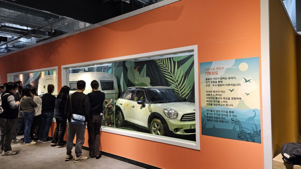 다양한 체험공간이 마련되어있는데 공룡한테 먹을 것도 주고, 공룡 씻기기 등 체험 시간에 관계 없이 하는 체험도 많았지만 특히 다이노케어센터 와 액티비티 캠핑카 체험은 아이들이 너무 좋아했던 체험이에요.
