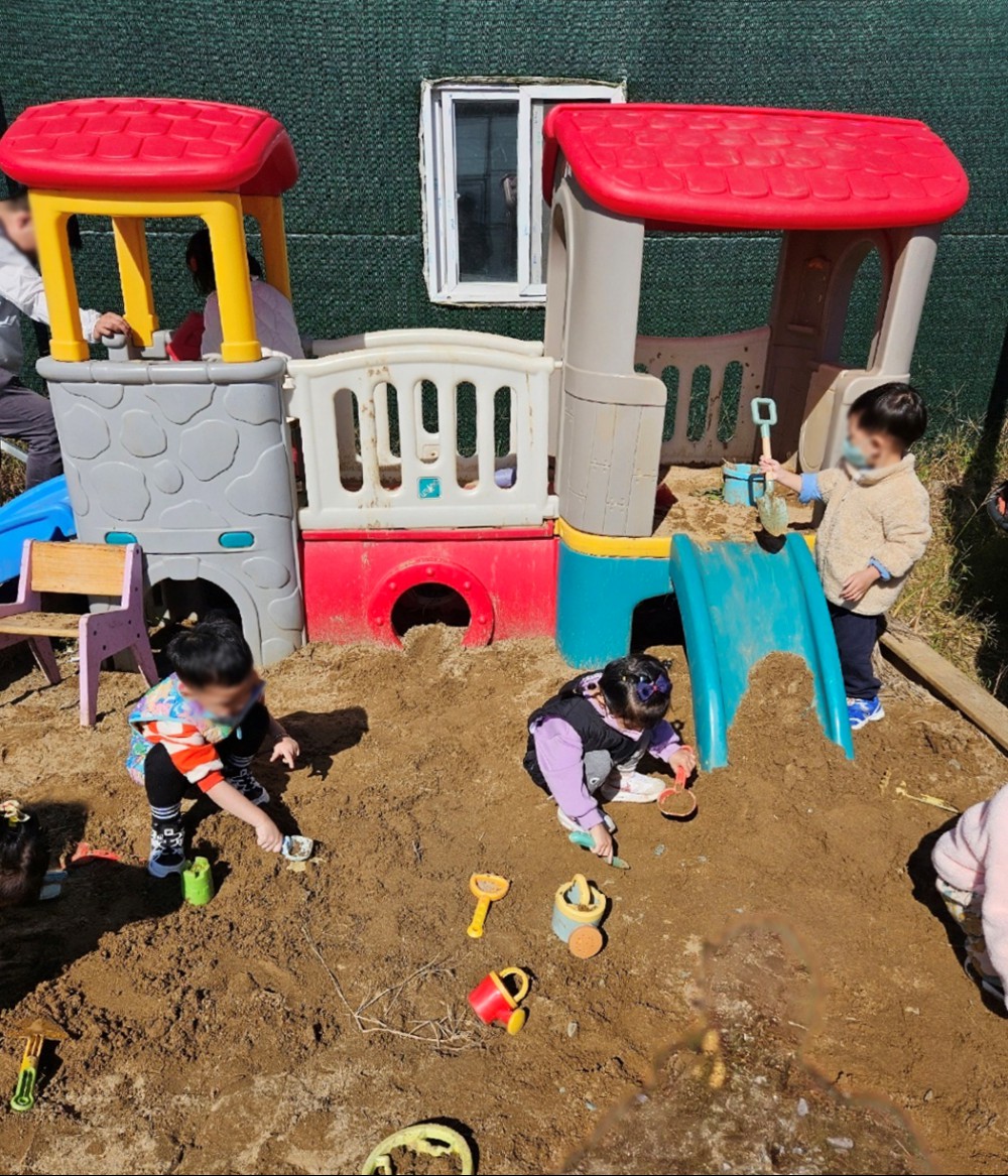 은하농장에는 버섯따기 체험 아쿠아포닉스 외에도 한쪽 편에 흙놀이를 할 수 있는 아이들이 즐길 수 있는 자그마한 공간이 마련되어 있는데요. 미끄럼틀, 트램펄린이 있어서 아이가 재미있게 놀았어요. 특히 흙놀이의 경우 요즘 놀이터들이 대부분 흙이 안 깔려있다 보니 아이가 흙을 만지고 체험할 수 있어서 좋았습니다.